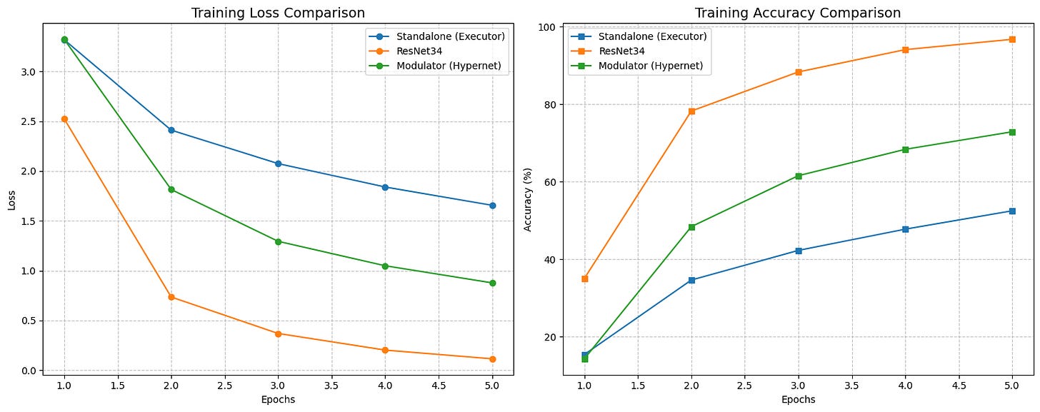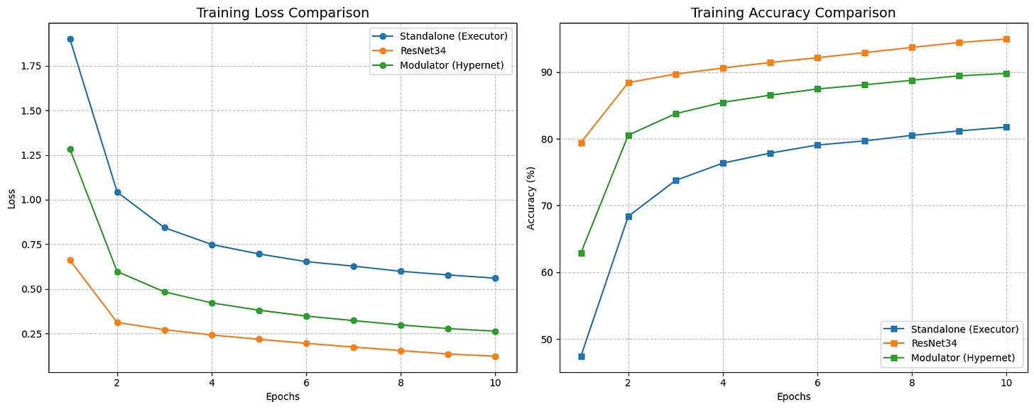 We showed that a model can effectively rewrite its own wiring for every single image it sees. While we didn’t beat the heavily optimized ResNet34 (yet), the fact that a self-modifying network stabilized and performed within striking distance of a standard architecture on limited data is a massive win.